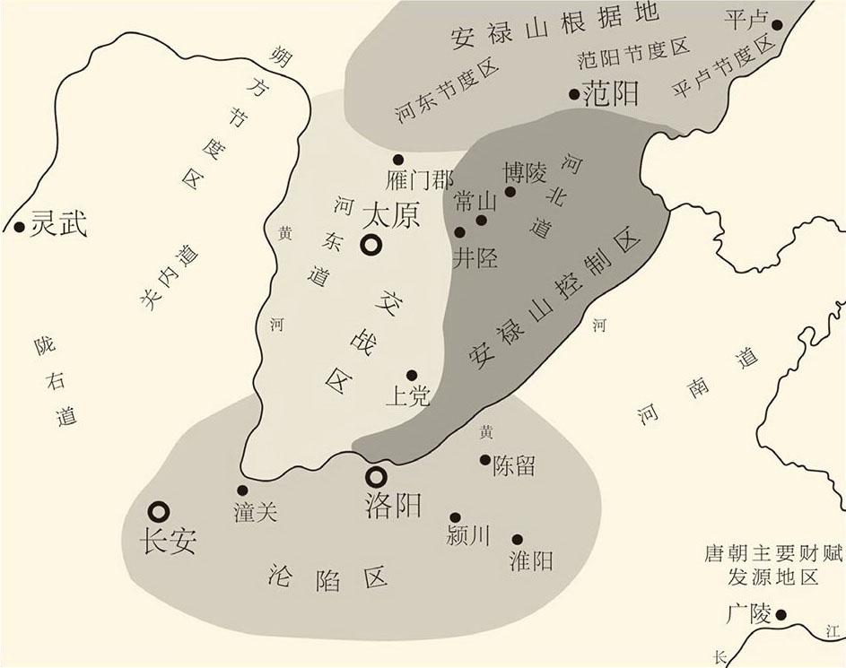 灵武在今宁夏回族自治区吴忠市北,开元九年(721)帝国在这里设置了朔方节度区。看看地图就知道,由北向南的黄河以东,北边是安禄山的根据地河东、范阳、平卢,中间是双方交战区,南边是洛阳和长安两大沦陷区,河西则是朔方节度区。以灵武为指挥部,朔方为大本营,东进可以直捣安禄山的老窝,南下可以收复两京,可谓左右逢源。